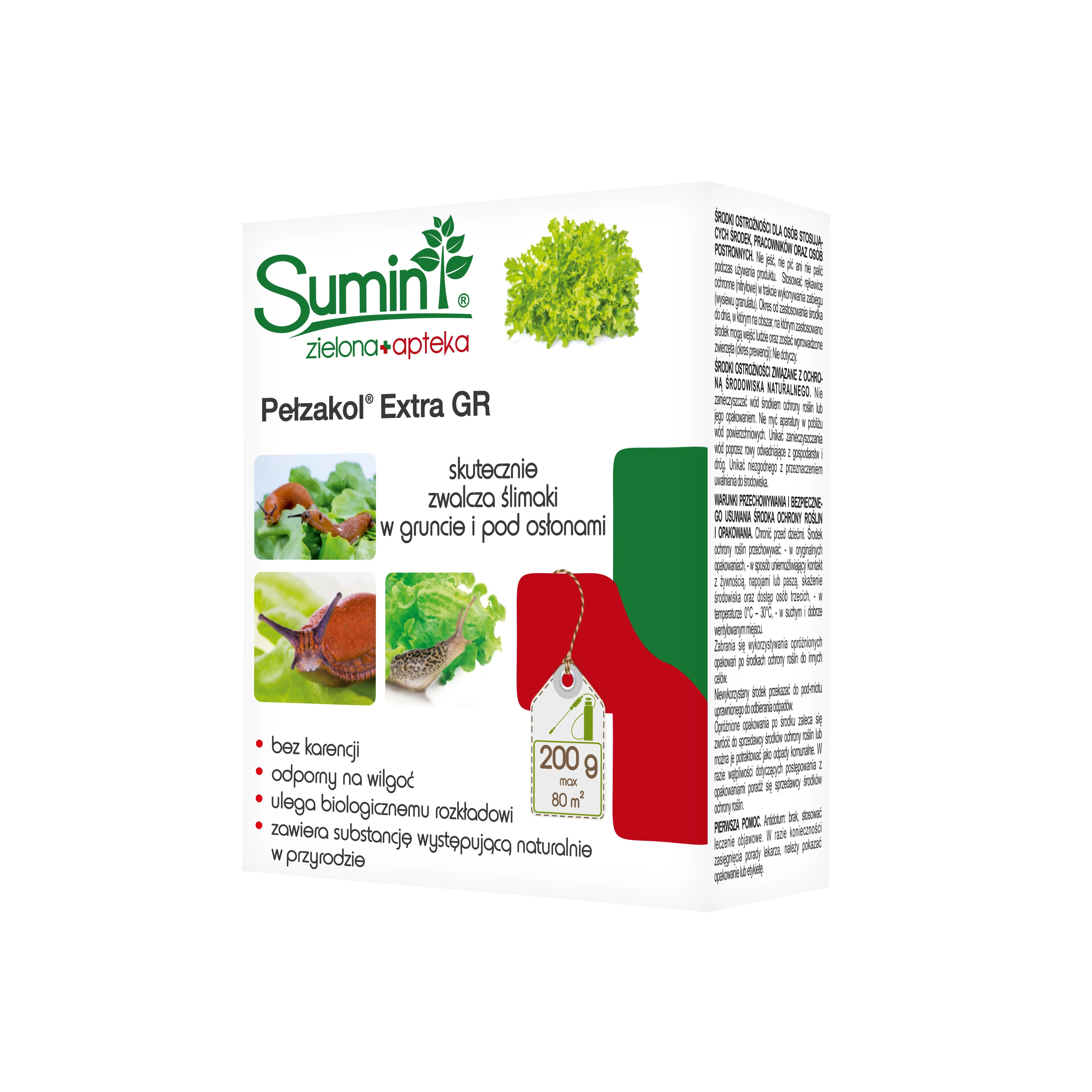 PEŁZAKOL EXTRA GR ZWALCZA ŚLIMAKI W GRUNCIE I POD OSŁONAMI 80M2 KARTON 200G SUMIN