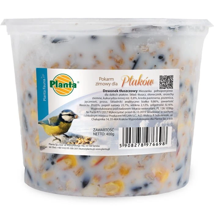 POKARM ZIMOWY DLA PTAKÓW DZWONEK TŁUSZCZOWY WYCIĄGANY 400G PLANTA FAUNA
