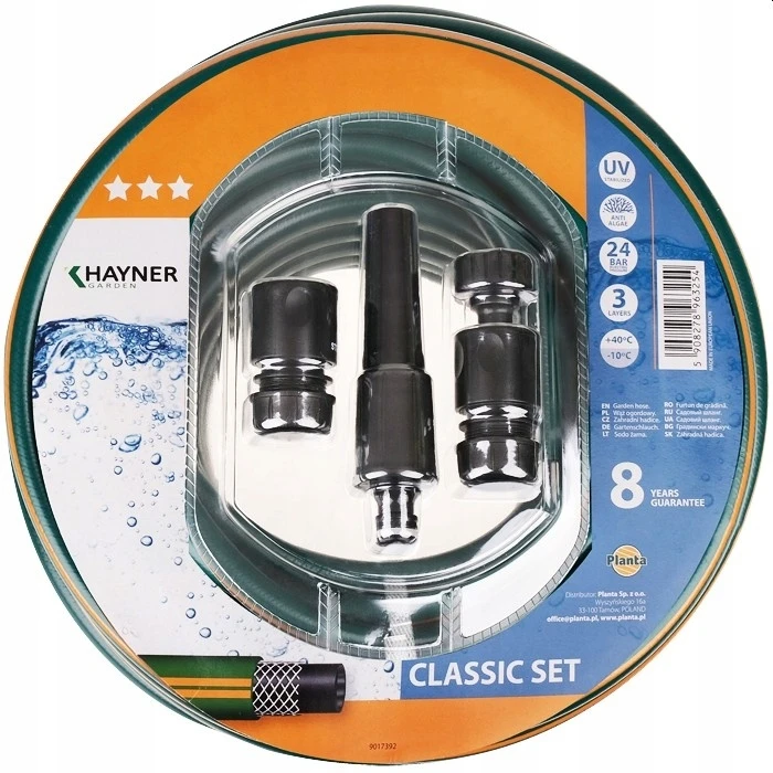WĄŻ OGRODOWY CLASSIC 1/2" X 20M + ZŁĄCZKI + ZRASZACZ 8 LAT GWARANCJI PLANTA KHAYNER GARDEN